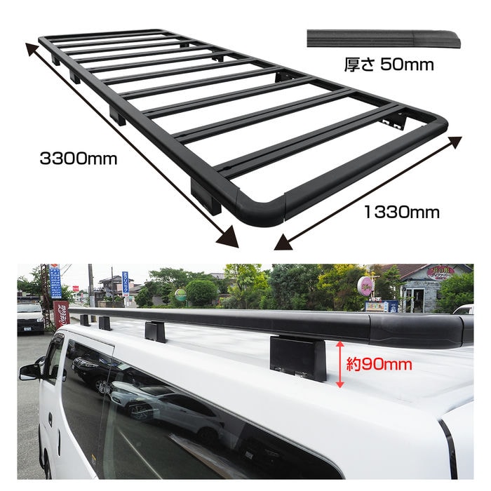 ※キャラバンのルーフ長を極限まで使い切る長さ3300mm。圧倒的な積載力とクールなルックスが手に入ります。